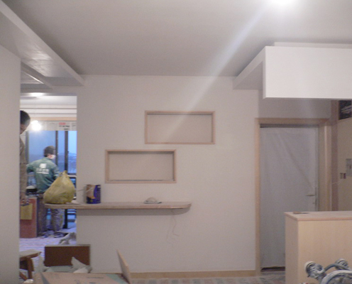 3、用45墻尼(粉刷石膏)找平墻面,(45墻尼具有保溫隔熱、耐火、隔音、粘結強度高,不易空鼓和開裂的特點,具有呼吸功能可調節(jié)空氣濕度,改善居室環(huán)境)